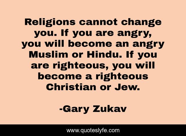 Religions cannot change you. If you are angry, you will become an angry Muslim or Hindu. If you are righteous, you will become a righteous Christian or Jew.