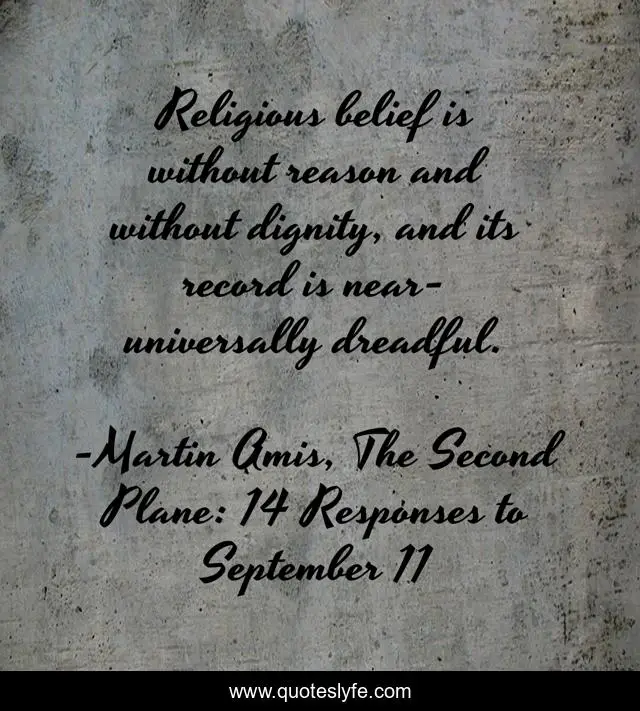 "Martin Amis, The Second Plane: 14 Responses to September 11 Quotes." Quoteslyfe.com, 2025. Fri. 05 Dec. 2025. <https://www.quoteslyfe.com/quote/Religious-belief-is-without-reason-and-without-30150>.