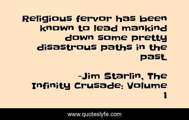 This page presents the quote "Religious fervor has been known to lead mankind down some pretty disastrous paths in the past.". Author of this quote is Jim Starlin, The Infinity Crusade: Volume 1. This quote is about the-infinity-crusade, religion, mankind,.