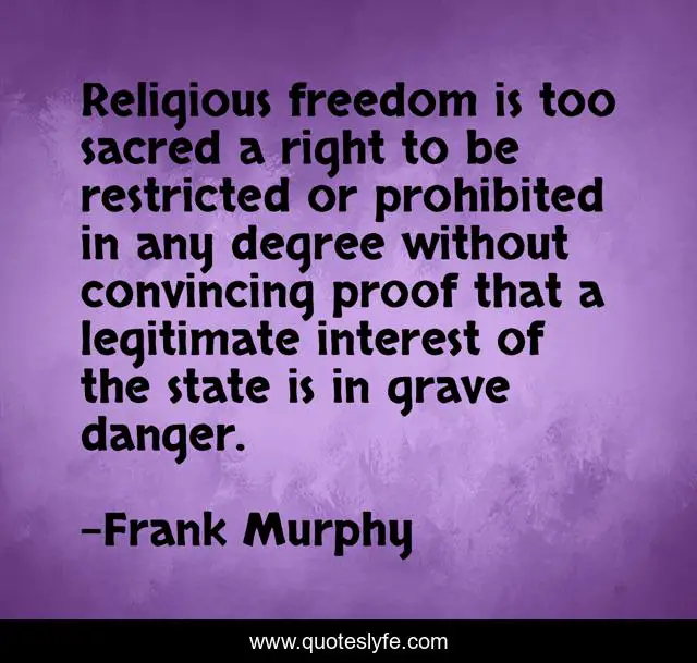 "Frank Murphy Quotes." Quoteslyfe.com, 2025. Fri. 05 Dec. 2025. <https://www.quoteslyfe.com/quote/Religious-freedom-is-too-sacred-a-right-330052>.