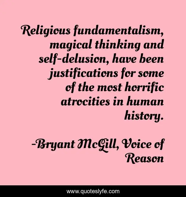 "Bryant McGill, Voice of Reason Quotes." Quoteslyfe.com, 2025. Sat. 06 Dec. 2025. <https://www.quoteslyfe.com/quote/Religious-fundamentalism-magical-thinking-and-self-delusion-120011>.