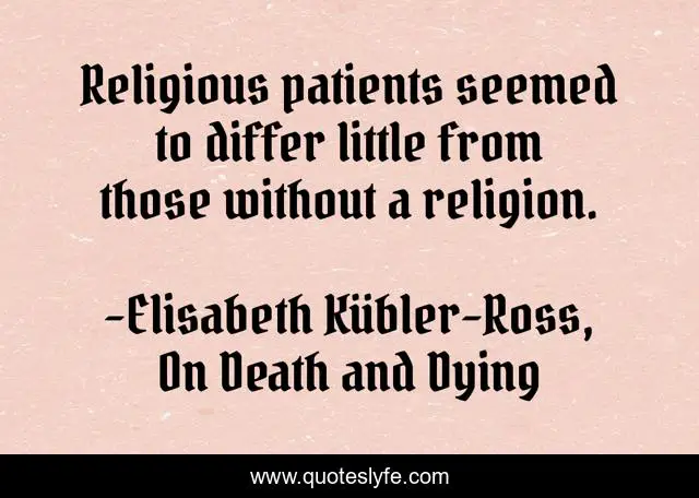 "Elisabeth Kübler-Ross, On Death and Dying Quotes." Quoteslyfe.com, 2025. Sun. 07 Dec. 2025. <https://www.quoteslyfe.com/quote/Religious-patients-seemed-to-differ-little-from-111091>.