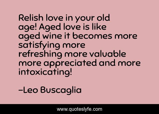 This page presents the quote "Relish love in your old age! Aged love is like aged wine it becomes more satisfying more refreshing more valuable more appreciated and more intoxicating!". Author of this quote is Leo Buscaglia. .