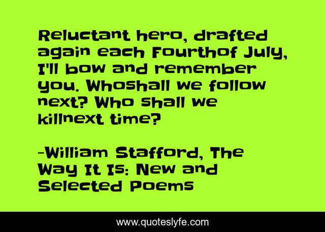 "William Stafford, The Way It Is: New and Selected Poems Quotes." Quoteslyfe.com, 2025. Sat. 06 Dec. 2025. <https://www.quoteslyfe.com/quote/Reluctant-hero-drafted-again-each-Fourthof-July-182053>.