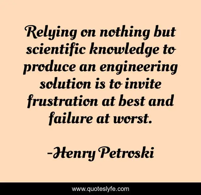 This page presents the quote "Relying on nothing but scientific knowledge to produce an engineering solution is to invite frustration at best and failure at worst.". Author of this quote is Henry Petroski. This quote is about engineering, knowledge, best,.