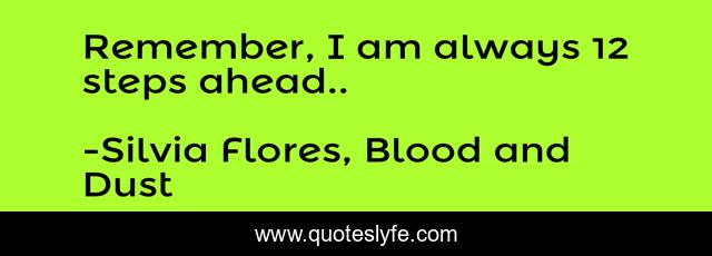 "Silvia Flores, Blood and Dust Quotes." Quoteslyfe.com, 2025. Sat. 06 Dec. 2025. <https://www.quoteslyfe.com/quote/Remember-I-am-always-12-steps-ahead-154468>.