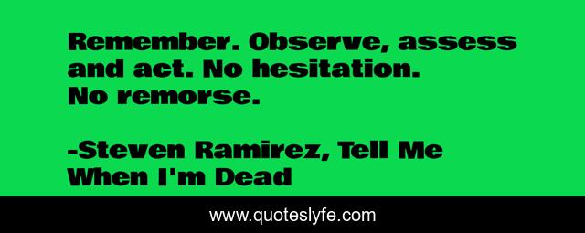 "Steven Ramirez, Tell Me When I'm Dead Quotes." Quoteslyfe.com, 2025. Mon. 08 Dec. 2025. <https://www.quoteslyfe.com/quote/Remember-Observe-assess-and-act-No-hesitation-156451>.