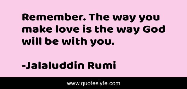 This page presents the quote "Remember. The way you make love is the way God will be with you.". Author of this quote is Jalaluddin Rumi. This quote is about love, affection,.