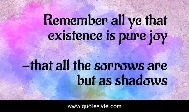 This page presents the quote "Remember all ye that existence is pure joy". Author of this quote is that all the sorrows are but as shadows. .