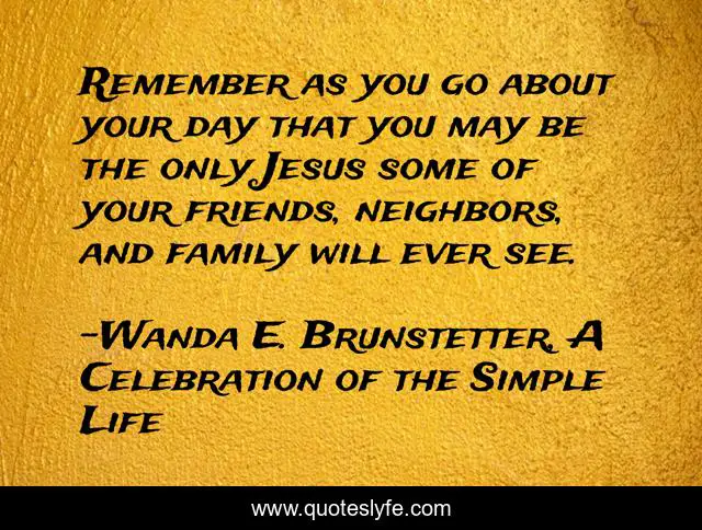 "Wanda E. Brunstetter, A Celebration of the Simple Life Quotes." Quoteslyfe.com, 2025. Fri. 05 Dec. 2025. <https://www.quoteslyfe.com/quote/Remember-as-you-go-about-your-day-208970>.