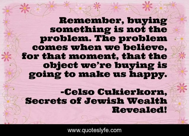 "Celso Cukierkorn, Secrets of Jewish Wealth Revealed! Quotes." Quoteslyfe.com, 2025. Fri. 05 Dec. 2025. <https://www.quoteslyfe.com/quote/Remember-buying-something-is-not-the-problem-247707>.