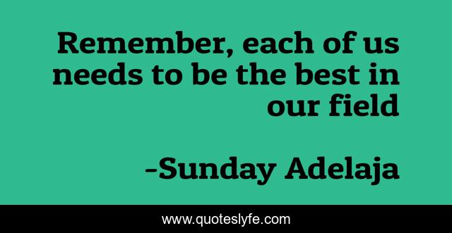 This page presents the quote "Remember, each of us needs to be the best in our field". Author of this quote is Sunday Adelaja. This quote is about success, field, achievement, greatness, need, best,.