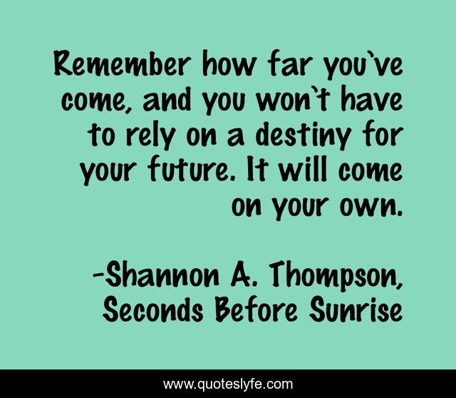 "Shannon A. Thompson, Seconds Before Sunrise Quotes." Quoteslyfe.com, 2025. Sun. 07 Dec. 2025. <https://www.quoteslyfe.com/quote/Remember-how-far-you-ve-come-and-32135>.
