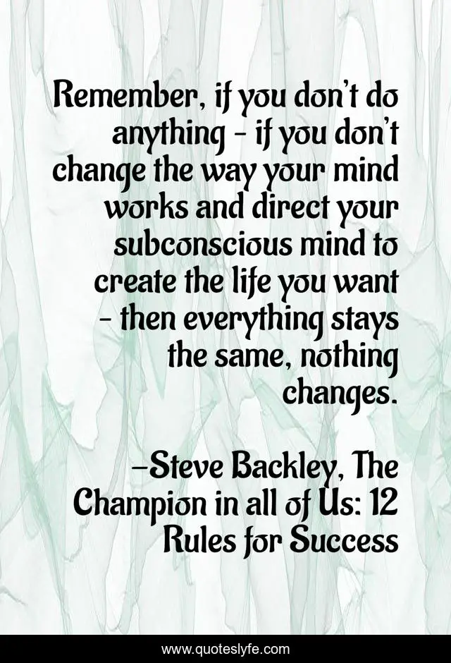 "Steve Backley, The Champion in all of Us: 12 Rules for Success Quotes." Quoteslyfe.com, 2025. Fri. 05 Dec. 2025. <https://www.quoteslyfe.com/quote/Remember-if-you-don-t-do-anything-32460>.
