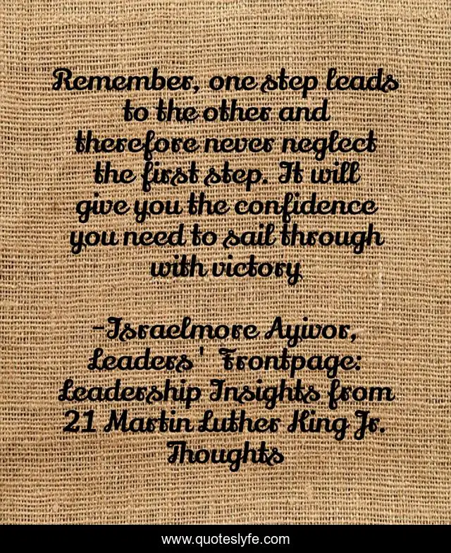 "Israelmore Ayivor, Leaders' Frontpage: Leadership Insights from 21 Martin Luther King Jr. Thoughts Quotes." Quoteslyfe.com, 2025. Sun. 28 Dec. 2025. <https://www.quoteslyfe.com/quote/Remember-one-step-leads-to-the-other-32727>.