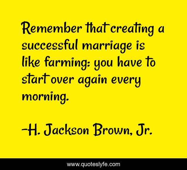 This page presents the quote "Remember that creating a successful marriage is like farming: you have to start over again every morning.". Author of this quote is H. Jackson Brown, Jr.. This quote is about successful, marriage,.