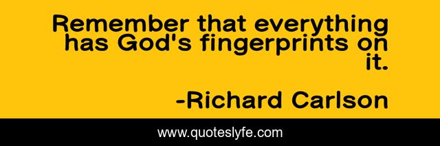 This page presents the quote "Remember that everything has God's fingerprints on it.". Author of this quote is Richard Carlson. .