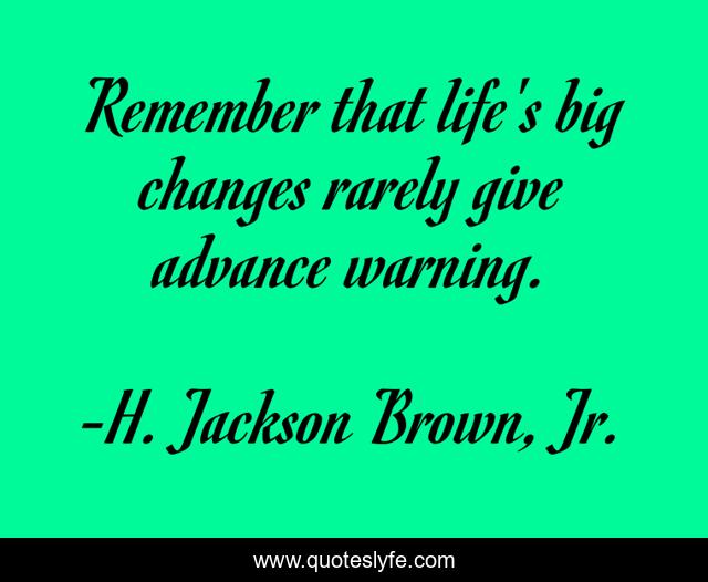 This page presents the quote "Remember that life's big changes rarely give advance warning.". Author of this quote is H. Jackson Brown, Jr.. This quote is about life, changes, remember,.
