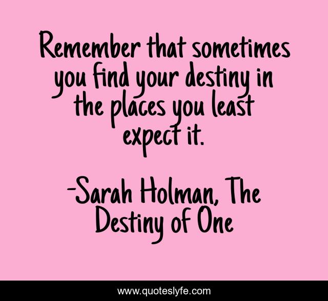 "Sarah Holman, The Destiny of One Quotes." Quoteslyfe.com, 2025. Sat. 06 Dec. 2025. <https://www.quoteslyfe.com/quote/Remember-that-sometimes-you-find-your-destiny-107342>.