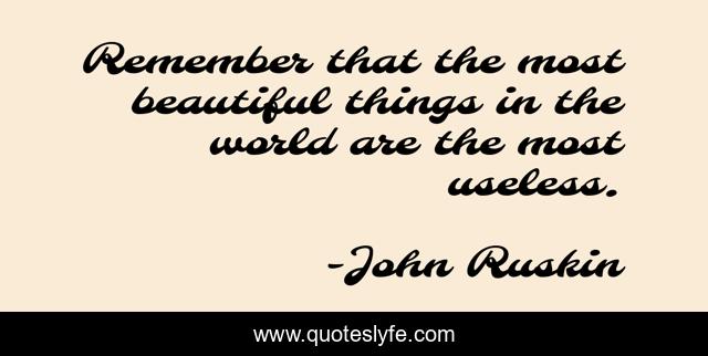 This page presents the quote "Remember that the most beautiful things in the world are the most useless.". Author of this quote is John Ruskin. This quote is about enthusiasm, beauty, inspirational,.