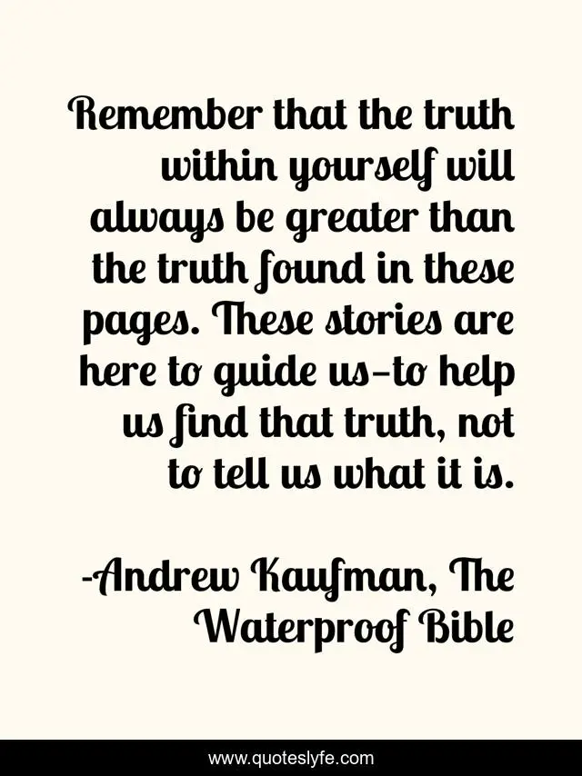 "Andrew Kaufman, The Waterproof Bible Quotes." Quoteslyfe.com, 2025. Fri. 05 Dec. 2025. <https://www.quoteslyfe.com/quote/Remember-that-the-truth-within-yourself-will-180776>.