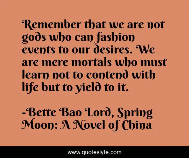 "Bette Bao Lord, Spring Moon: A Novel of China Quotes." Quoteslyfe.com, 2025. Sat. 06 Dec. 2025. <https://www.quoteslyfe.com/quote/Remember-that-we-are-not-gods-who-147163>.