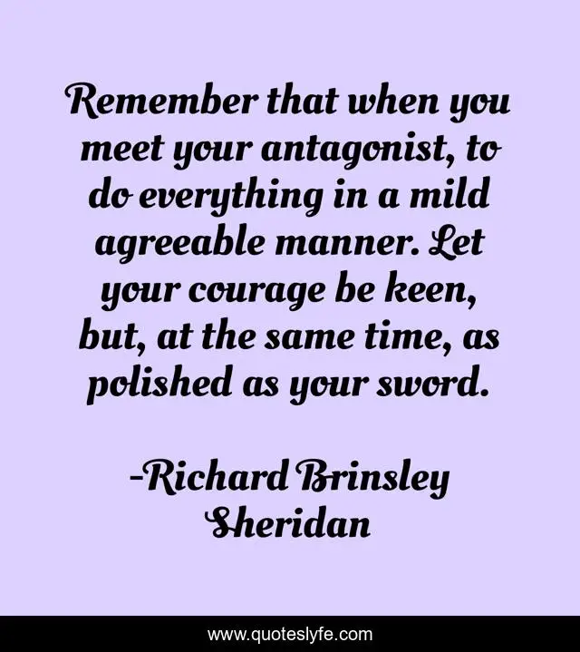 "Richard Brinsley Sheridan Quotes." Quoteslyfe.com, 2025. Fri. 05 Dec. 2025. <https://www.quoteslyfe.com/quote/Remember-that-when-you-meet-your-antagonist-310803>.