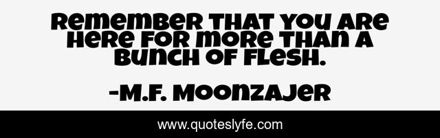 This page presents the quote "Remember that you are here for more than a bunch of flesh.". Author of this quote is M.F. Moonzajer. This quote is about live, meaning, flesh,.