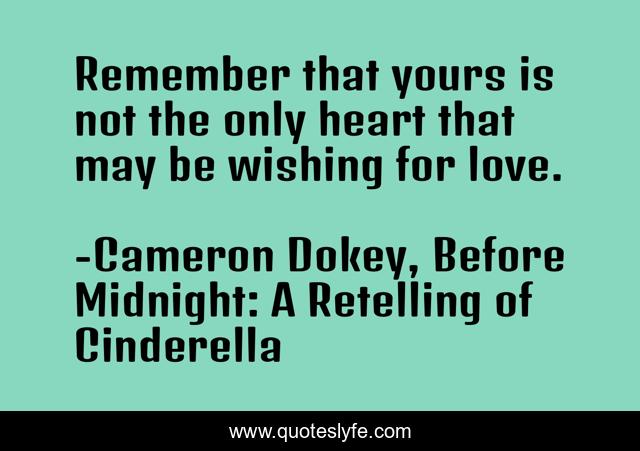 This page presents the quote "Remember that yours is not the only heart that may be wishing for love.". Author of this quote is Cameron Dokey, Before Midnight: A Retelling of Cinderella. This quote is about true-to-life, way-to-be, service,.