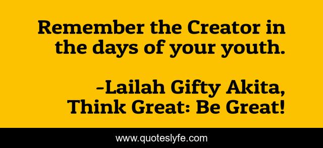 "Lailah Gifty Akita, Think Great: Be Great! Quotes." Quoteslyfe.com, 2025. Fri. 05 Dec. 2025. <https://www.quoteslyfe.com/quote/Remember-the-Creator-in-the-days-of-125357>.