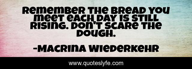 This page presents the quote "Remember the bread you meet each day is still rising. Don't scare the dough.". Author of this quote is Macrina Wiederkehr. .