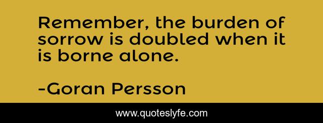 This page presents the quote "Remember, the burden of sorrow is doubled when it is borne alone.". Author of this quote is Goran Persson. This quote is about sorrow, remember, burden,.