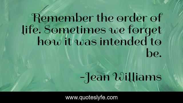 This page presents the quote "Remember the order of life. Sometimes we forget how it was intended to be.". Author of this quote is Jean Williams. .