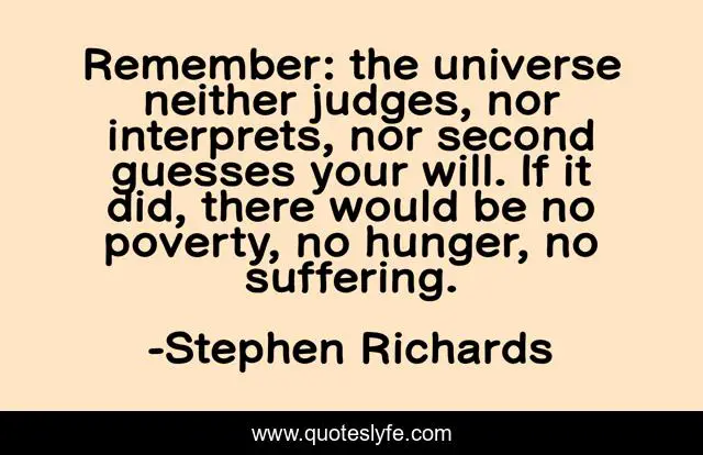 "Stephen Richards Quotes." Quoteslyfe.com, 2025. Fri. 05 Dec. 2025. <https://www.quoteslyfe.com/quote/Remember-the-universe-neither-judges-nor-interprets-159428>.