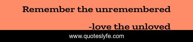 "love the unloved Quotes." Quoteslyfe.com, 2025. Sat. 06 Dec. 2025. <https://www.quoteslyfe.com/quote/Remember-the-unremembered-257649>.