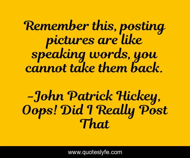 "John Patrick Hickey, Oops! Did I Really Post That Quotes." Quoteslyfe.com, 2025. Tue. 09 Dec. 2025. <https://www.quoteslyfe.com/quote/Remember-this-posting-pictures-are-like-speaking-136515>.