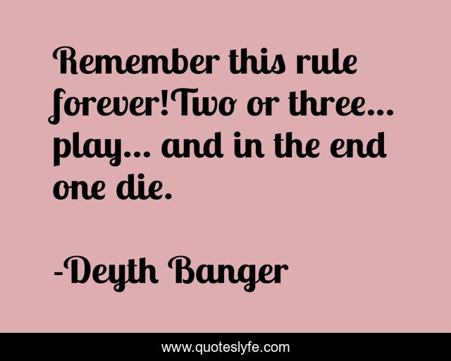 This page presents the quote "Remember this rule forever!Two or three... play... and in the end one die.". Author of this quote is Deyth Banger. This quote is about die, three, two,.