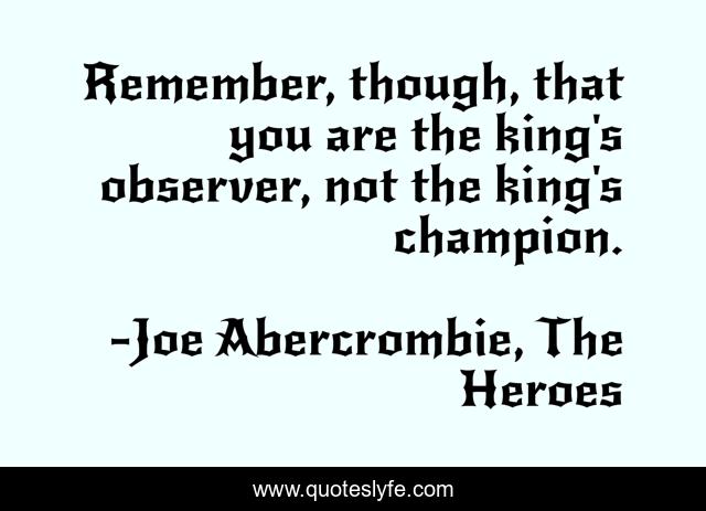 This page presents the quote "Remember, though, that you are the king's observer, not the king's champion.". Author of this quote is Joe Abercrombie, The Heroes. This quote is about king, war,.