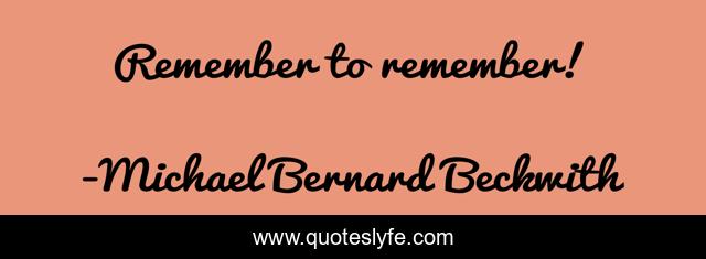This page presents the quote "Remember to remember!". Author of this quote is Michael Bernard Beckwith. This quote is about mind, power-of-thoughts,.