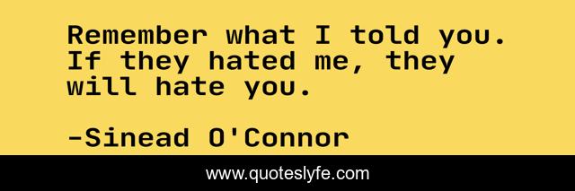 This page presents the quote "Remember what I told you. If they hated me, they will hate you.". Author of this quote is Sinead O'Connor. This quote is about hate-crimes, haters, hate,.
