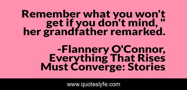 This page presents the quote "Remember what you won't get if you don't mind, " her grandfather remarked.". Author of this quote is Flannery O'Connor, Everything That Rises Must Converge: Stories. .