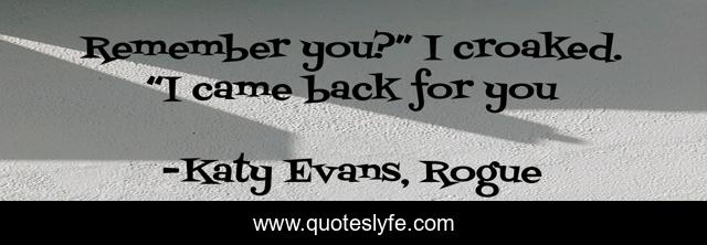 This page presents the quote "Remember you?” I croaked. “I came back for you". Author of this quote is Katy Evans, Rogue. This quote is about rogue, soul-mates, memory,.
