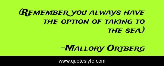 This page presents the quote "(Remember you always have the option of taking to the sea.)". Author of this quote is Mallory Ortberg. This quote is about enthusiasm, life, inspirational, sea,.