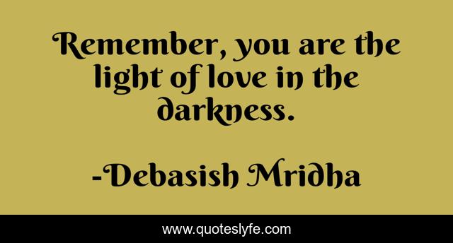 "Debasish Mridha Quotes." Quoteslyfe.com, 2025. Fri. 05 Dec. 2025. <https://www.quoteslyfe.com/quote/Remember-you-are-the-light-of-love-150184>.