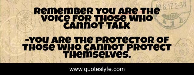 This page presents the quote "Remember you are the voice for those who cannot talk". Author of this quote is you are the protector of those who cannot protect themselves.. .
