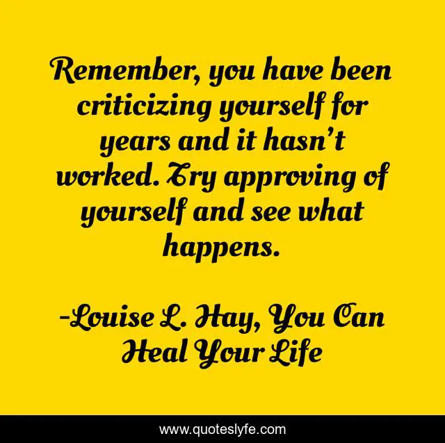 "Louise L. Hay, You Can Heal Your Life Quotes." Quoteslyfe.com, 2025. Fri. 05 Dec. 2025. <https://www.quoteslyfe.com/quote/Remember-you-have-been-criticizing-yourself-for-142529>.