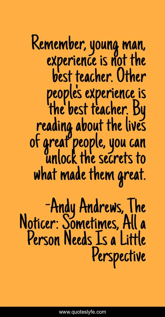 "Andy Andrews, The Noticer: Sometimes, All a Person Needs Is a Little Perspective Quotes." Quoteslyfe.com, 2025. Tue. 09 Dec. 2025. <https://www.quoteslyfe.com/quote/Remember-young-man-experience-is-not-the-12655>.