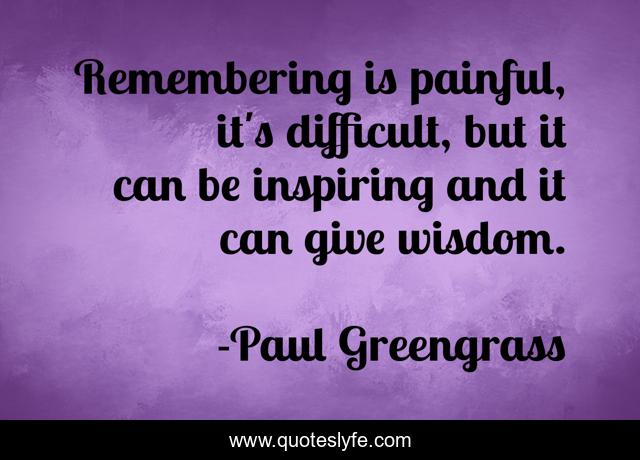 This page presents the quote "Remembering is painful, it's difficult, but it can be inspiring and it can give wisdom.". Author of this quote is Paul Greengrass. This quote is about difficult, painful, give,.