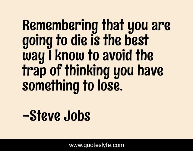 This page presents the quote "Remembering that you are going to die is the best way I know to avoid the trap of thinking you have something to lose.". Author of this quote is Steve Jobs. This quote is about life, death, inspirational, enthusiasm, motivatonal, hope,.