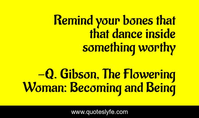 "Q. Gibson, The Flowering Woman: Becoming and Being Quotes." Quoteslyfe.com, 2025. Sat. 06 Dec. 2025. <https://www.quoteslyfe.com/quote/Remind-your-bones-that-that-dance-inside-142719>.